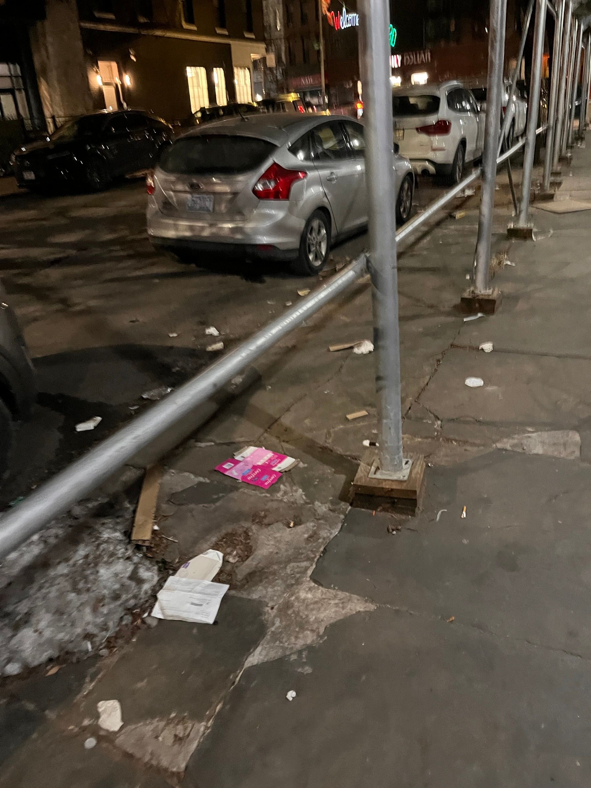 Trash underneath scaffolding on 1105 Fulton as of January 2nd